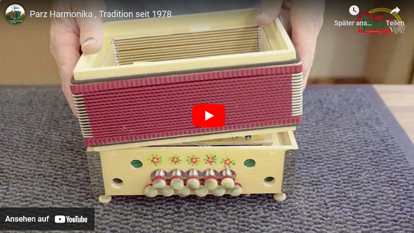 Zuletzt eine kleine Geschichte: Franz Parz, gerlernter Tischler, wollte sich seinerzeit bei der Firma Stachel eine neue Harmonika kaufen. Doch die Fertigung des Instrumentes hätte ein Jahr in Anspruch genommen. Darauf wurde Franz Parz vom Besitzer gefragt, ob er mit einem Hobel umgehen könne und sich seine Harmonika selbst bauen möchte? Das war der erste Schritt zur Selbstständigkeit und somit kam der Stein ins Rollen.